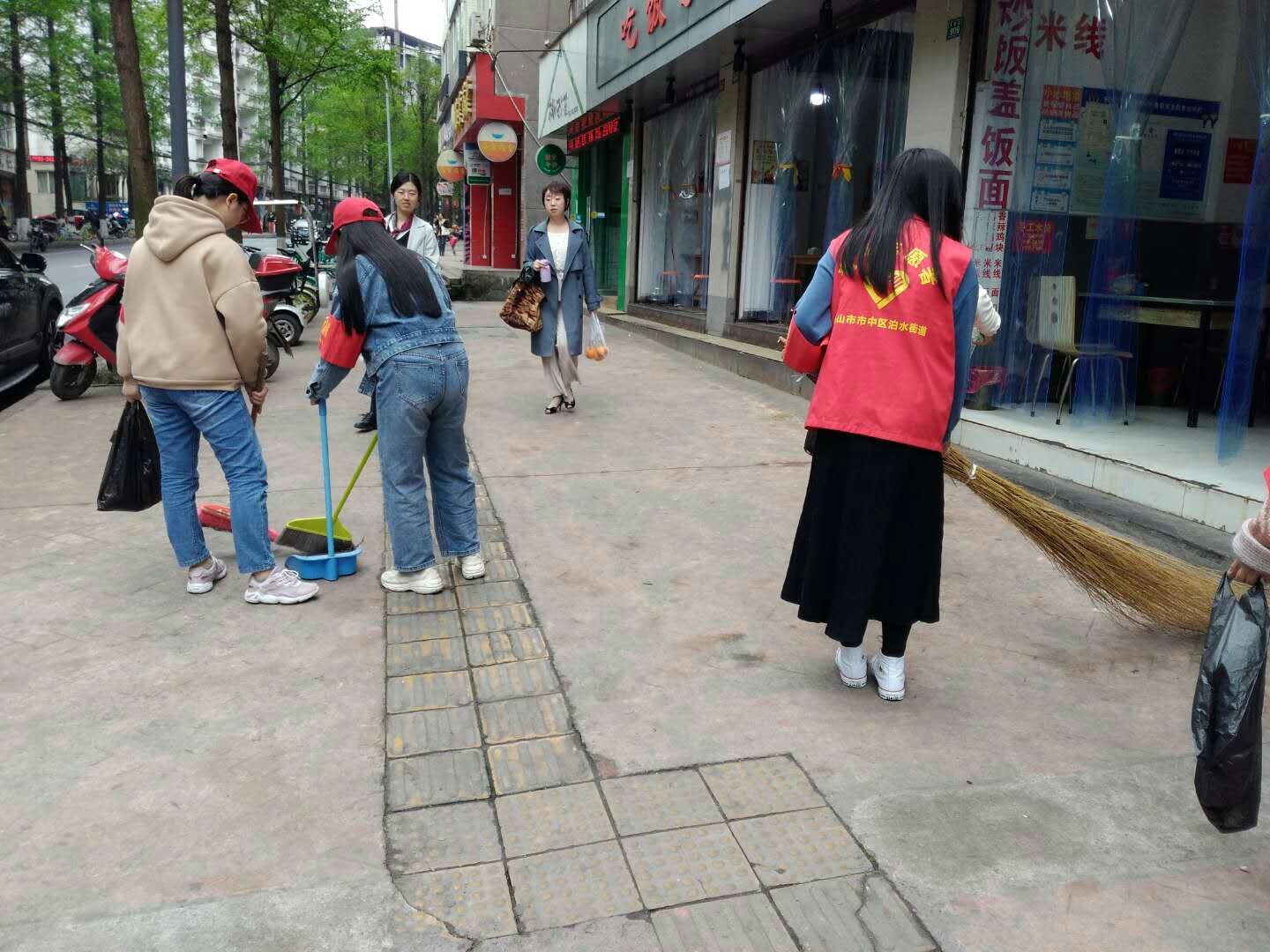 在此次实践活动中,我们对斑竹湾内部分小区进行了仔细清扫,并两人一组打扫居民楼道;分两组拾捡部分海棠路街道两边的烟头和垃圾;认真归置好共享车辆等等。在我们两个多小时的努力下,小区与街道更显明亮与整洁。而在清扫的过程中,我们也遇到了参与乐山创卫的工作者们。他们是我们乐山创卫背后的无言英雄,如今我们干净卫生的良好环境,离不开他们的努力与付出。正如这群可爱的人向我们说的那声“欢迎”,我们也号召更多的志愿者加入到乐山创卫的行动中来,并在日常生活中讲清洁、爱卫生,以自己切实的行为助力乐山创卫。