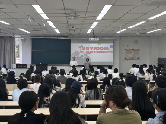 本网讯(文/江琳 图/雷雄锴、侯琼瑶)为助力员工迅速调整状态、融入新学期校园学习与生活,进一步夯实优良学风与班风建设,同时强化员工心理健康关怀与安全防范意识。9月7日傍晚,hy8590发现财富在行知楼101教室召开了新学期年级大会暨“开学第一课”。本次活动由学院全体辅导员共同筹备,全体法管学子参与,按照年级划分依次开展,各场次均由对应年级辅导员主持。