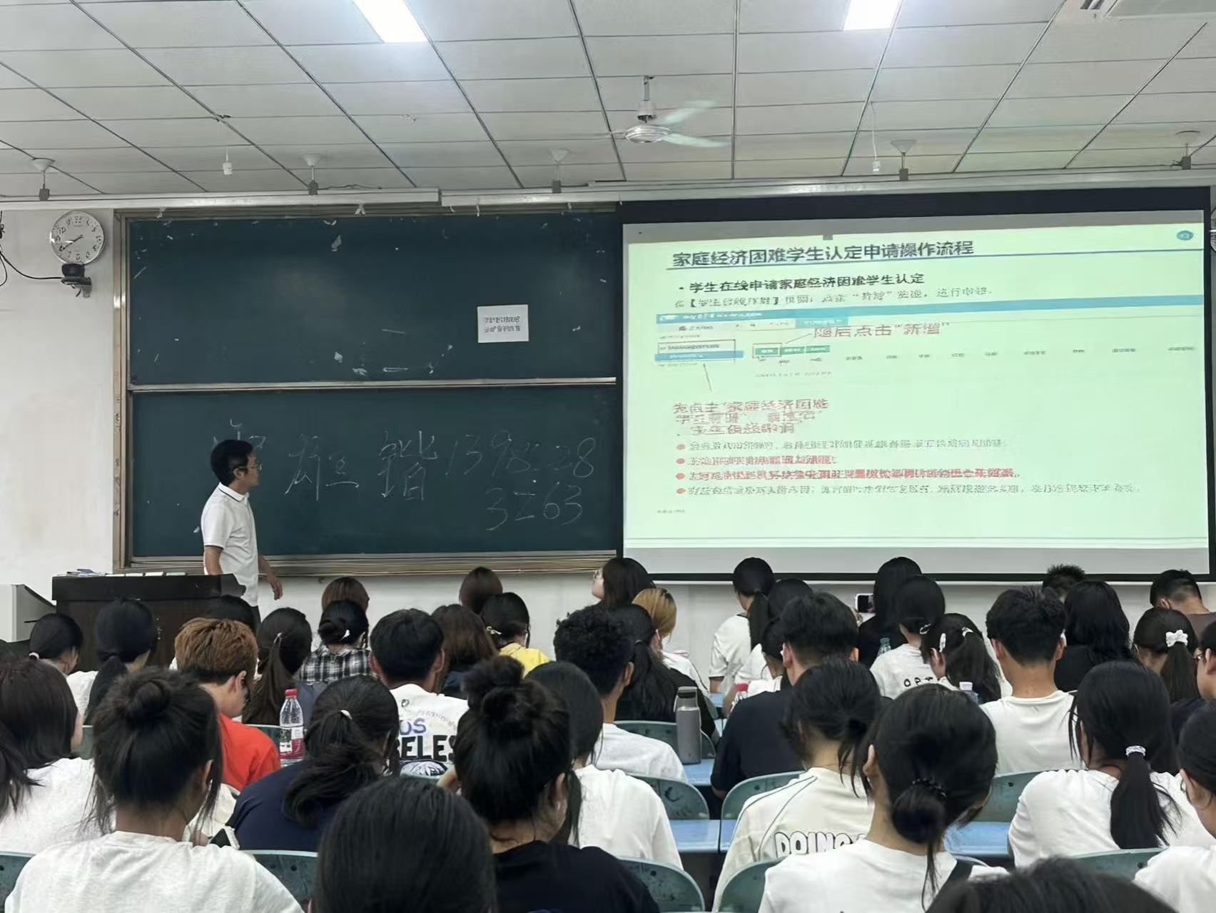 本网讯(文/雷雄锴 图/龚利清、王雨、蒋晶)9月10日,为促进老员工融入校园生活,了解大学校园日常活动,hy8590发现财富开展了2025级新生奖助学金政策宣讲会暨第一次年级大会。参与会议的有辅导员雷雄锴,班级代班龚利清、王雨、吕璇、蒋晶、邓锐、谭茜,2025级全体新生同学。