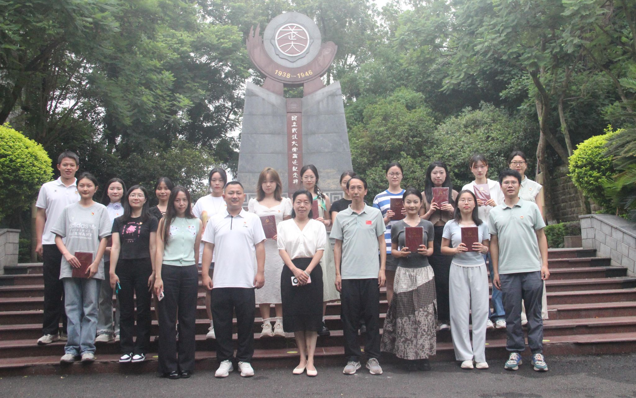 最后陈范华、黄显岗、杨兵以及全体毕业生党员在乐师武汉大学纪念碑前合影留念。