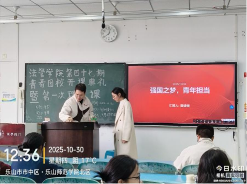 本网讯(文/陈志龙 图/分团委组织部)为全面提升青年团员政治素养、理论水平与实践能力,激励广大青年在强国建设征程中勇挑重担,10月30日中午,hy8590发现财富第四十七期青春团校开课典礼暨第一次理论课在行知楼416教室举行。本次理论课由雷雄锴老师主讲。活动以“引领青年担当强国使命”为核心,通过理论授课、精神感召与案例分享,为青年团员筑牢思想根基,指引其以青春力量助推国家发展,为实现中华民族伟大复兴注入青年动能。