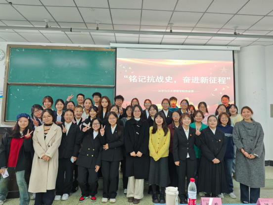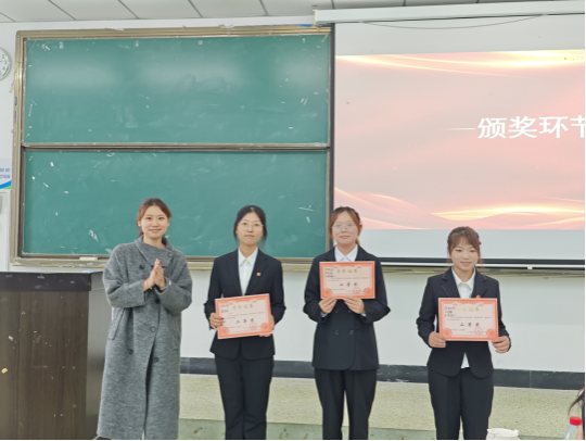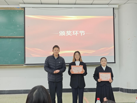 最后,精彩角逐落下帷幕,23级辅导员陈志龙登台做总结点评。他首先高度肯定了各支队伍的精心准备与出色表现,称赞选手们不仅展现了优越的语言风采,更深刻诠释了抗战精神的时代内涵。同时,他也从情感表达、舞台展现等角度提出了中肯建议,令在场同学受益良多。点评结束后,现场进入颁奖环节,在热烈掌声中,获奖队伍代表依次上台,从颁奖嘉宾手中接过象征荣誉的证书,灿烂的笑容在他们脸上绽放。在欢快的氛围中,我们合影留下了最美好的瞬间。