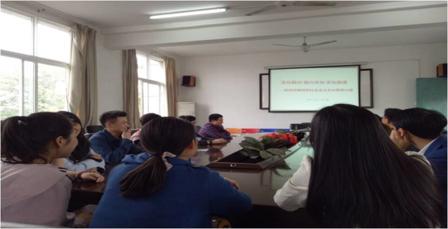 首先刘克稳博士为大家作了以“文化复兴,复兴文化,文化自信——推动中国特色社会主义文化繁荣兴盛”为主题的学术交流,他以文化现状为着眼点,语言风趣幽默,深入浅出,从当代文化危机出发,谈到了文化复兴的重要性及复兴什么样的文化,最后结合十九大精神,深刻阐释了立足文化自信,推动中国特色社会主义文化大发展大繁荣的现实路径。在报告过程中,不时就大家关心的问题展开互动,进行解答,气氛热烈,引起了大家对这一主题高度共鸣。接下来刘博士就自己在教学科研方面的经验跟老师们作了深入交流。