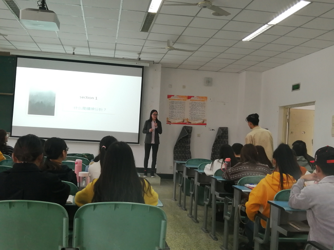 “你真的足够了解自己吗?”胡老师以这个看似简单的问题开场,在同学们的沉默和深思中,胡老师以自己认知为切入点,引导大家理解什么是精神以及如何进行精神分析,围绕心理咨询方法、咨询伦理与精神分析理论展开专业讲授,通过互动问答及幽默风趣的语言风格让同学们极快的进入了其构建的教学体系中。最后,胡老师一一解答同学们提出的问题,对本次专题讲座进行了总结,并列出了专业书单供同学们扩展阅读。