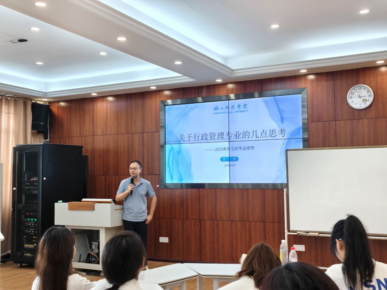 在王志坚学长的分享后,许亚梅老师围绕行政管理专业 “万金油” 的就业优势,鼓励新生自主规划人生、提前了解岗位知识;邵旭博士针对专业焦虑问题,从建立学科壁垒、发挥文科优势等方面进行剖析,并通过现场问卷展示生成式人工智能对文科专业的影响,缓解新生专业迷茫;行政管理专业负责人王怡老师则多角度解读专业课程体系,以 “推行好制度、建设好社会、维护好生活” 为核心,通俗阐释行政管理专业的价值,为新生专业学习提供指引。