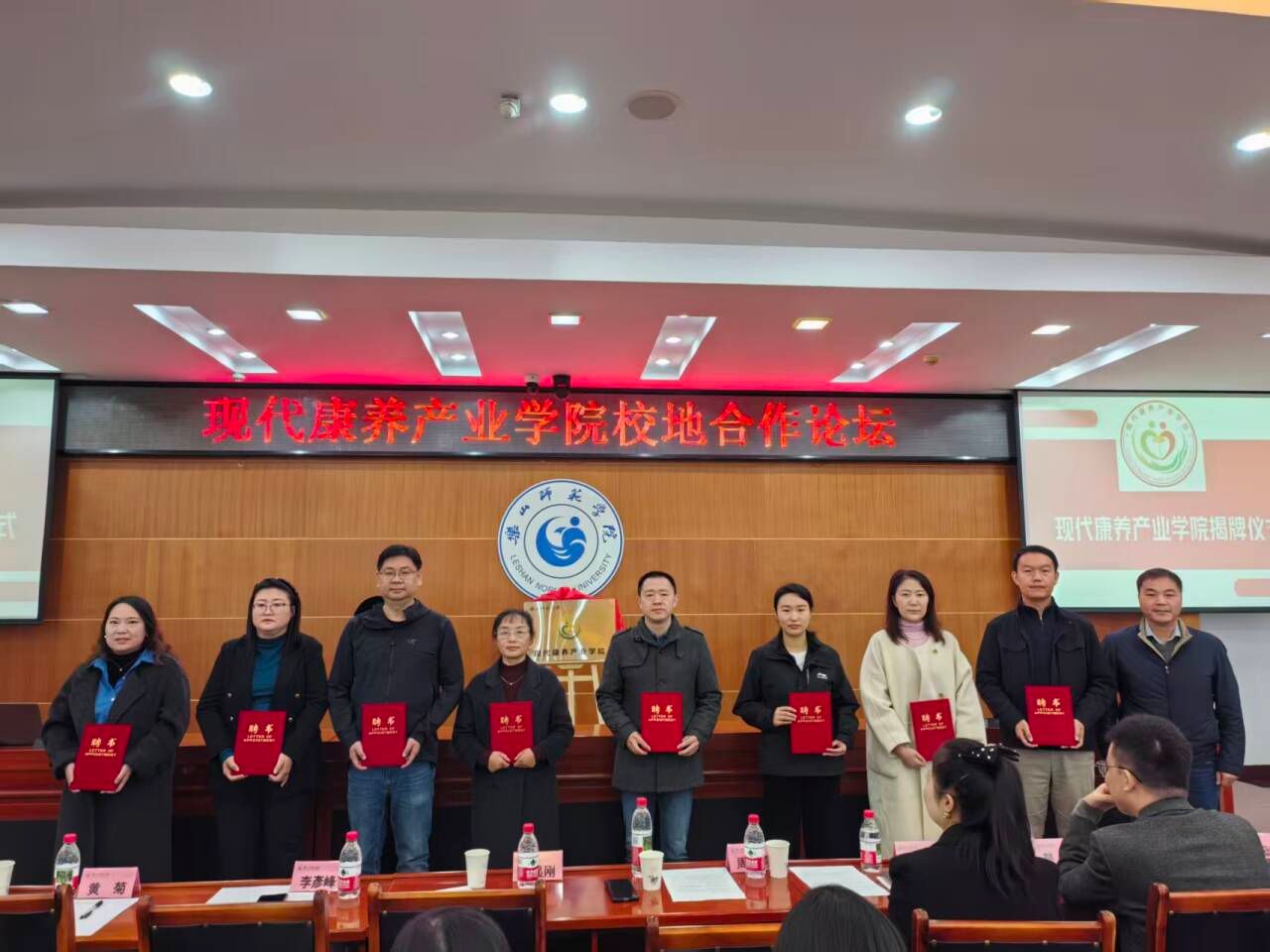 在全体与会人员的共同见证下,周勇与四川川投盛榉养老服务有限公司黄菊经理一同为“现代康养产业学院”揭牌,标志着公司在产教融合、服务地方的道路上迈出了更为坚实的一步,一个集人才培养、科学研究、社会服务于一体的创新平台扬帆起航。紧接着,大会举行了隆重的行业导师聘任仪式。周勇向8位来自康养产业一线的资深专家和管理者颁发了行业导师聘书。这批行业导师的加入,将为现代康养产业公司的员工带来最前沿的行业动态、最真实的实践案例和最宝贵的职场经验,有效打通理论教学与行业实践的“最后一公里”,为员工构筑起通往职业生涯的坚实桥梁。仪式结束后,全体领导、行业导师及参会教师在沫若图书馆前合影留念,定格下这一历史性的瞬间。